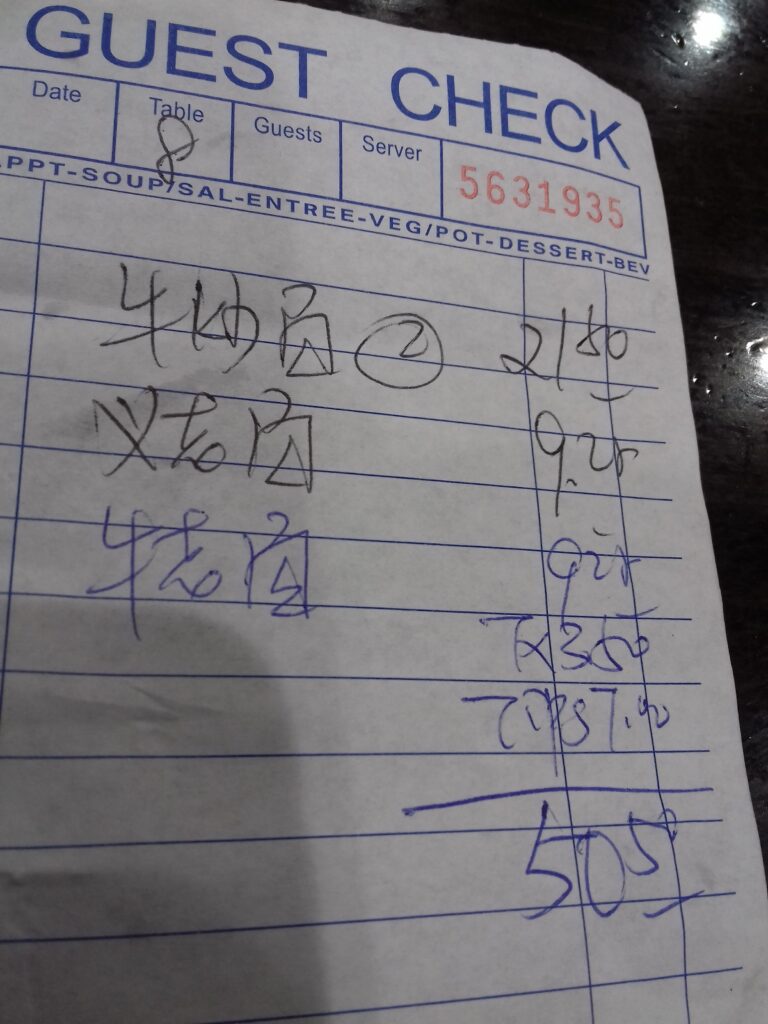 Facture resto chinois